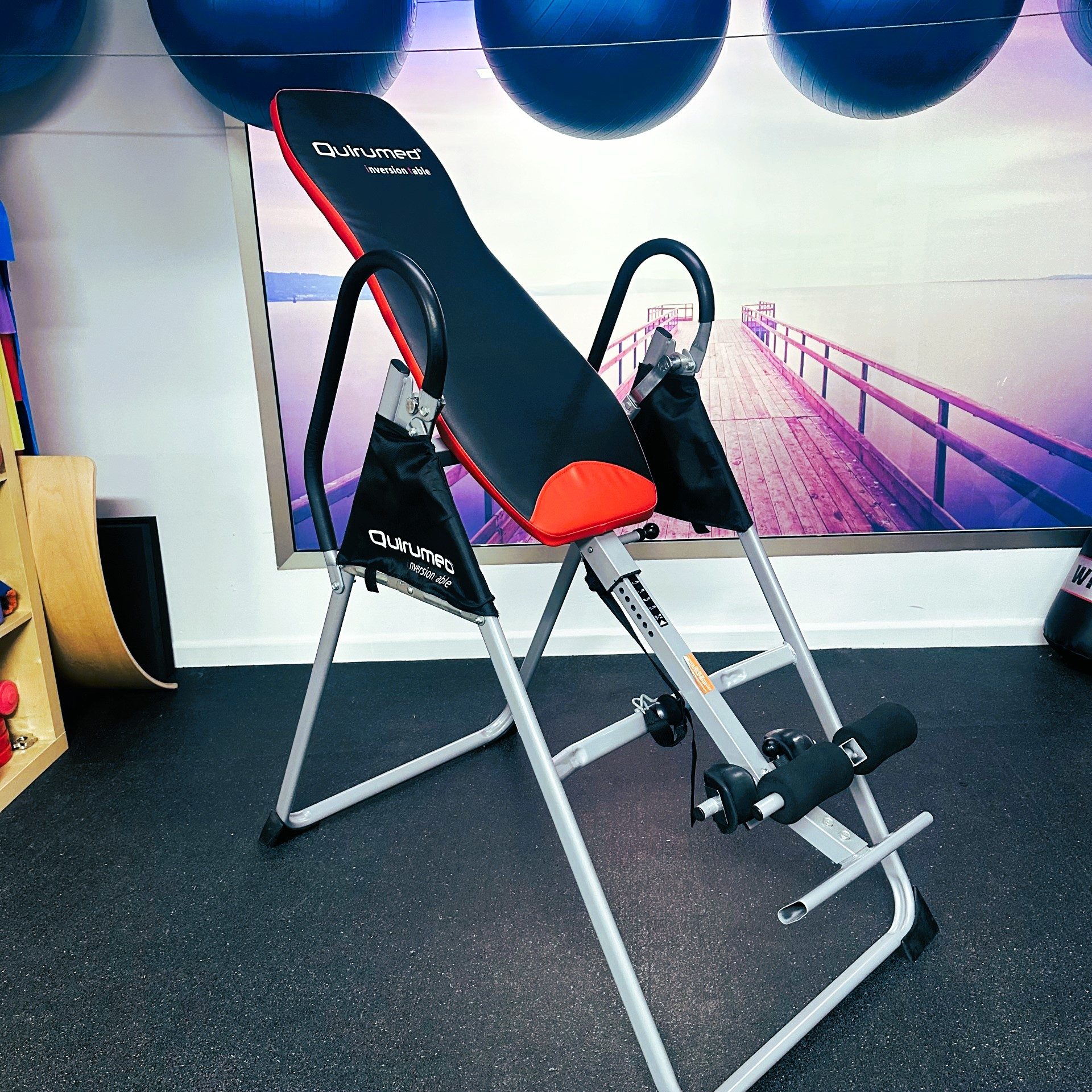 El aparato de inversión ayuda a mejorar la circulación sanguínea y reducir la presión en la columna vertebral. Al estar en posición invertida, se permite que la gravedad trabaje a favor de la relajación muscular y la disminución de dolores en la espalda.